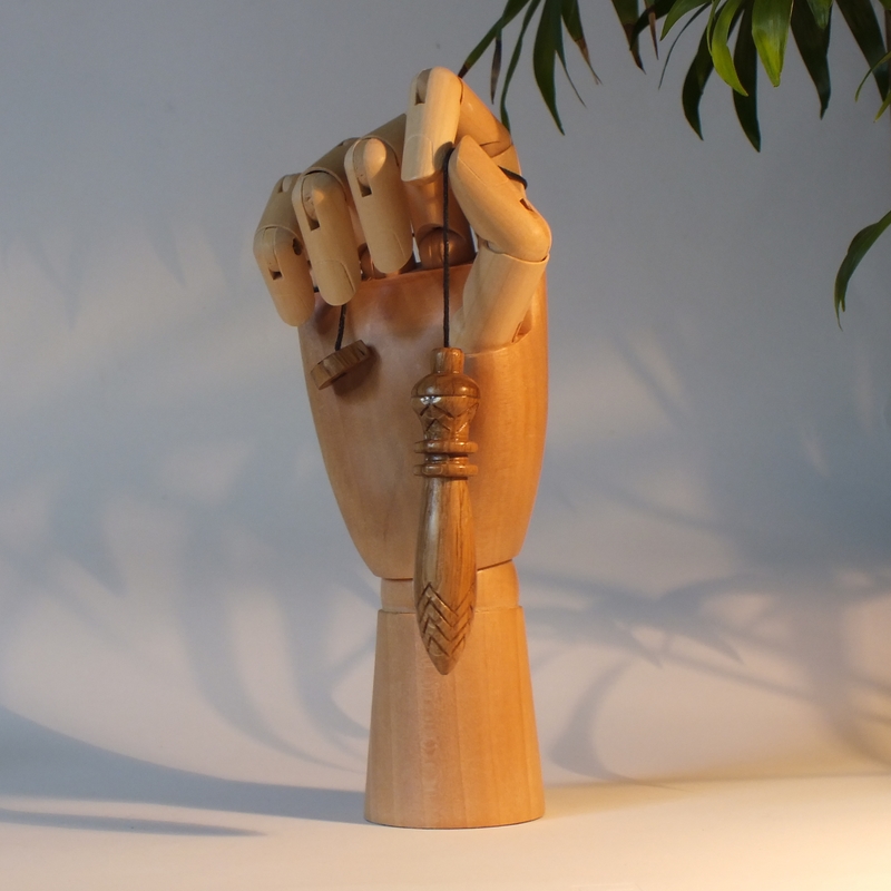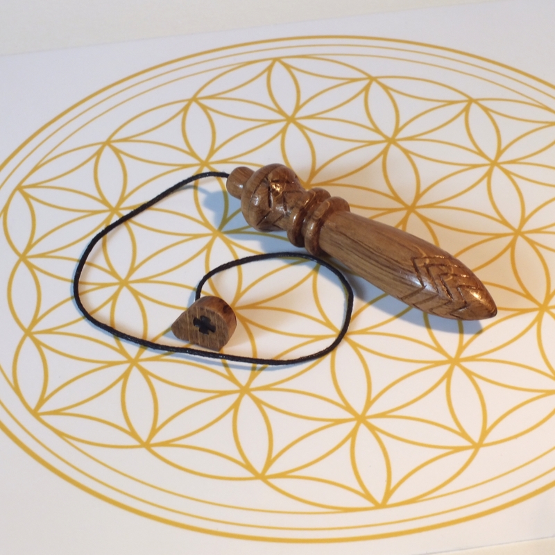 "Thot" ___ Pendule réalisé par mes soins en tournage sur bois dans mon atelier en Anjou. ___ Tourné en bois de chêne, lesté pour obtenir le poids idéal du pendule de Thot. Respecte le nombre d'or dans sa forme (1,618 cm) et la taille (7 cm de la pointe à la limite des chevrons supérieurs) Quatre chevrons à sa base et deux dans sa hauteur. ___ Le pendule de Thot, à la fois émetteur et récepteur. C’est sa forme pointue qui détermine en grande partie la nature de ses propriétés émettrices et réceptrices.(Ondes de formes) Le pendule de Thot est un émetteur puissant et cela en fait un outil de choix pour « charger » l’eau, un objet ou un lieu. De plus, c’est un pendule neutre qui ne nécessite pas d’être purifié avant chaque utilisation. ___ Symbolisme : Le chêne : Arbre sacré pour de nombreux peuples, le chêne est le symbole de la force et de la longévité. Les celtes mais aussi les grecs le vénéraient pour ses qualités. Il était considéré comme le temple des Nymphes. Connu pour être le messager des Dieux, cet arbre massif est le sujet de nombreuses légendes. ___ C'est une pièce unique, ainsi vous recevrez le pendule que vous voyez en photo. ___ Des petites imperfections peuvent se voir sur la surface en fonction du type de bois (Nœuds, blessures ....), cela ne remet pas en cause la qualité du pendule. ___ Référence : 25-37tb-09
