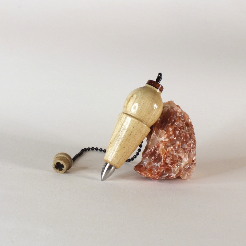 "Buxus II" ___ Pendule réalisé à la main en tournage sur bois dans mon atelier, en bord de Loire, près d'Angers. ___ Pendule étudié pour la radiesthésie physique (Moderne). Il est capable de capter la totalité des ondes naturelles, quelles soient magnétiques, électriques, radioactives ou autres*. Émetteur et récepteur, il est également possible de l'utiliser pour la radiesthésie classique. Pour radiesthésistes débutants ou confirmés qui aiment les pendules de poids moyennement lourds (31g). ___ Fabriqué dans du bois de Laurier. ___ C'est une pièce unique, ainsi vous recevrez le pendule que vous voyez en photo. ___ Pour créer mes pendules de radiesthésie, j'utilise des bois de ma région à plus de 90%. ___ *Buxus, latin de "buis". *Utilisé avec la double antenne, non fournie. (Voir le site internet Reviha, la radiesthésie étonnante) ___ Référence : 25-44bm-09