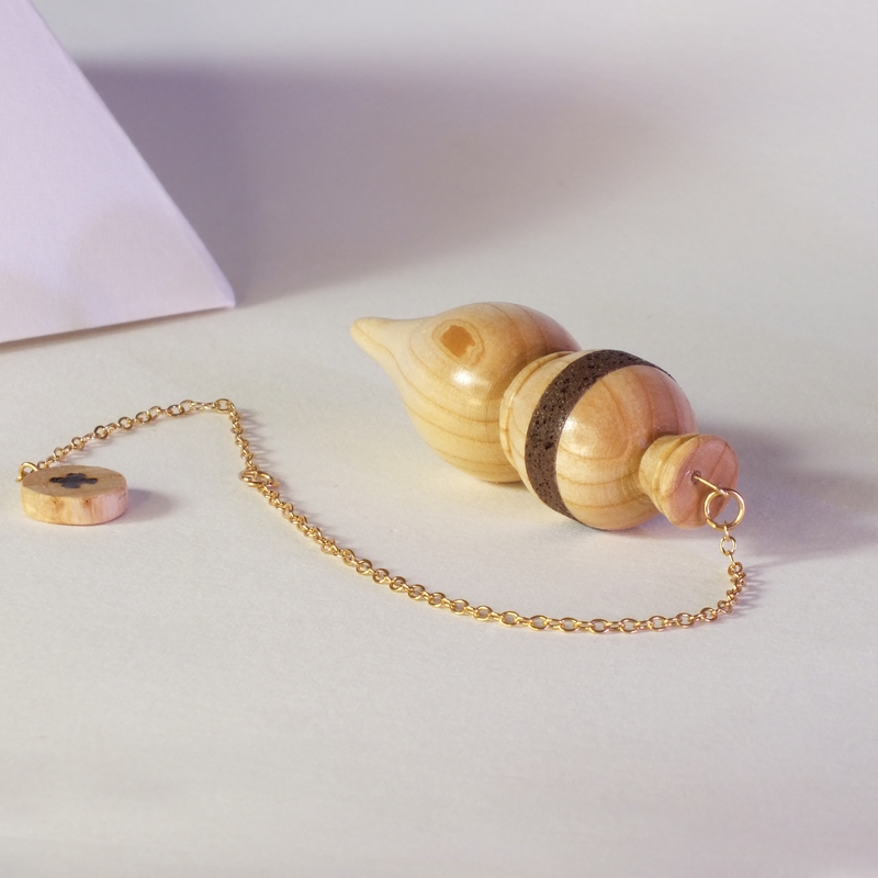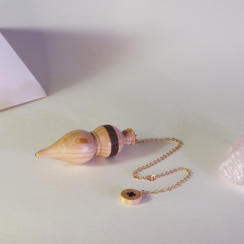 "Cinis" ___ Pendule en bois de Frêne et pierre de lave d'Auvergne (Pouzzolane) pour la radiesthésie classique, réalisé par mes soins en tournage sur bois dans mon atelier en Anjou. ___ Pendule très bien équilibré, d'un poids de 19g , utilisation très agréable et précise pour tout type de recherche. ___ Pour la création des mes pendules "bois et pierre" je n'utilise pas de pierres semi-précieuses mais uniquement "Le Cailloux" de nos chemins, nos rivières... Cela me donne un peu plus de travail mais le résultat en vaut la peine... ___ La pierre de lave, ou pouzzolane, symbolise la force, le courage et la résilience, grâce à son origine volcanique, et est associée à l'ancrage et la stabilité via le chakra racine, ainsi qu'à la régulation des émotions via le chakra plexus solaire. La pierre de lave est donc un matériau à la fois physique et spirituel, utilisé pour ses propriétés énergétiques et son symbolisme profond. ___ C'est une pièce unique, ainsi vous recevrez le pendule que vous voyez en photo. ___ * "Cinis", latin de frêne. ___ Référence : 25-27bp-10