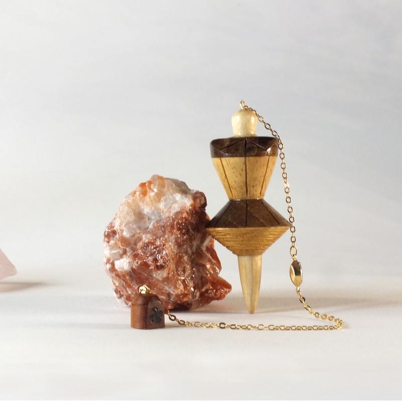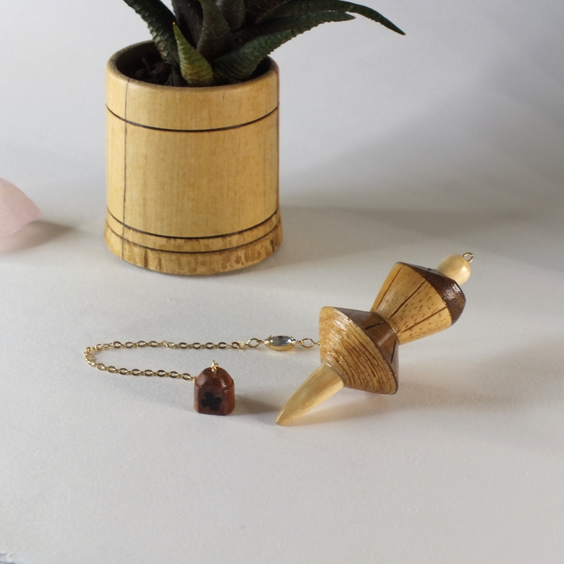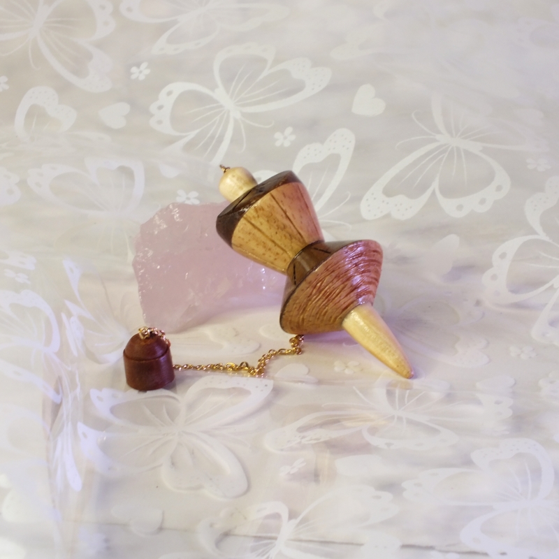 "Caprice" ___ Pendule réalisé à la main en tournage sur bois dans mon atelier à La Possonnière 49170, en Anjou. ___ Pendule en bois de noyer et de hêtre, pointe en bois d'épine, pour la radiesthésie classique. ___ C'est une pièce unique, ainsi vous recevrez le pendule que vous voyez en photo. ___ Pour créer mes pendules de radiesthésie, j'utilise des bois de ma région à plus de 90%. Des petites imperfections peuvent se voir sur la surface en fonction du type de bois (Nœuds, blessures ....), cela ne remet pas en cause la qualité du pendule. ___ Référence : 25-42tb-10