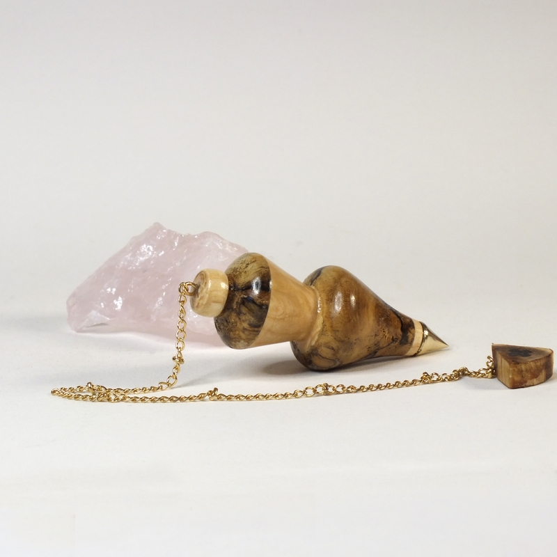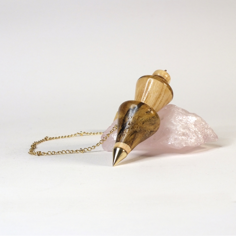 "Ramus" * ___ Pendule réalisé à la main en tournage sur bois dans mon atelier à La Possonnière 49170, en Anjou. ___ Pendule tourné dans du bois d'épine et de frêne. Sa pointe en laiton poli est un plus pour le suivi sur plan ou photo. ___ Pendule de radiesthésie classique, idéal pour radiesthésie débutants ou confirmés qui aiment les pendules légers. ___ C'est une pièce unique, ainsi vous recevrez le pendule que vous voyez en photo. ___ Pour créer mes pendules de radiesthésie, j'utilise des bois de ma région à plus de 90% ou exotique de réemploi. ___ *Ramus, latin de embranchement, départ de branche sur le tronc de l'arbre. Ce pendule a été tourné dans ce départ de branche ". ___ Référence : 25-47bm-10