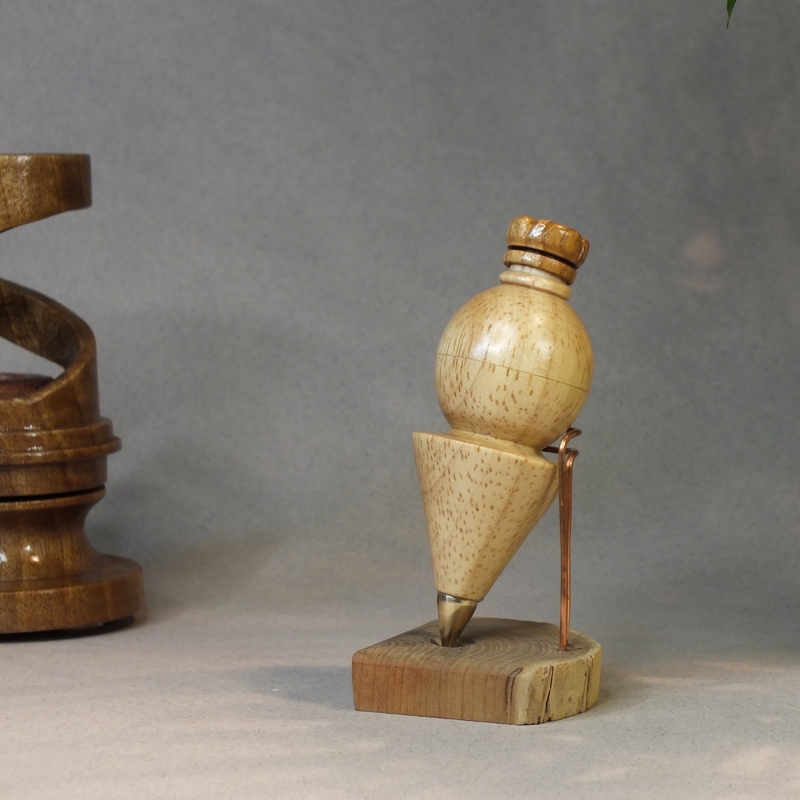 "Occultus" * ___ Le premier pendule de radiesthésie sans chaine apparente ! ___ Réalisé à la main en tournage sur bois dans mon atelier à La Possonnière 49170, en Anjou. ___ C'est un pendule en bois de hêtre pour la radiesthésie classique, tout type de recherche. Support original en bois de noyer, sur base tournante n'ayant pas de relation avec le pendule (Juste pour le décor). Votre bureau n'attend plus que lui ! ___ Sa pointe effilée en laiton poli facilitera la recherche sur plan ou photo. ___ Pour radiesthésistes débutants ou confirmés qui aiment les pendules de poids moyennement lourds (35g). ___ C'est une pièce unique, ainsi vous recevrez le pendule que vous voyez en photo. ___ Pour créer mes pendules de radiesthésie, j'utilise des bois de ma région à plus de 90% et bois exotiques de réemploi. ___*Occultus, Latin de 'Occulte (secret)' ___ Référence : 26-17bp-01