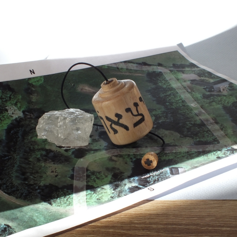" Hébra I " ___ Pendule réalisé à la main en tournage sur bois dans mon atelier à La Possonnière 49170, en Anjou. Pendule hébraïque en bois de hêtre lesté (42 g) ___ Gravé manuellement de lettres hébraïques qui servent de codes vibratoires. Le mot représente un concept énergétique spécifique selon la tradition kabbalistique. ___ Ce modèle est prévu pour la recherche d'eau. ___ Le radiesthésiste pose le pendule sur la zone concernée et observe le mouvement (oscillation, rotation, pause). Le type de mouvement indique la présence d’un déséquilibre ou d’une énergie à traiter. De la, il peut harmoniser les fréquences, purifier un lieu ou protéger contre des influences négatives. ___ Référence : 26-69tb-02 Prix : 40 € port non compris.