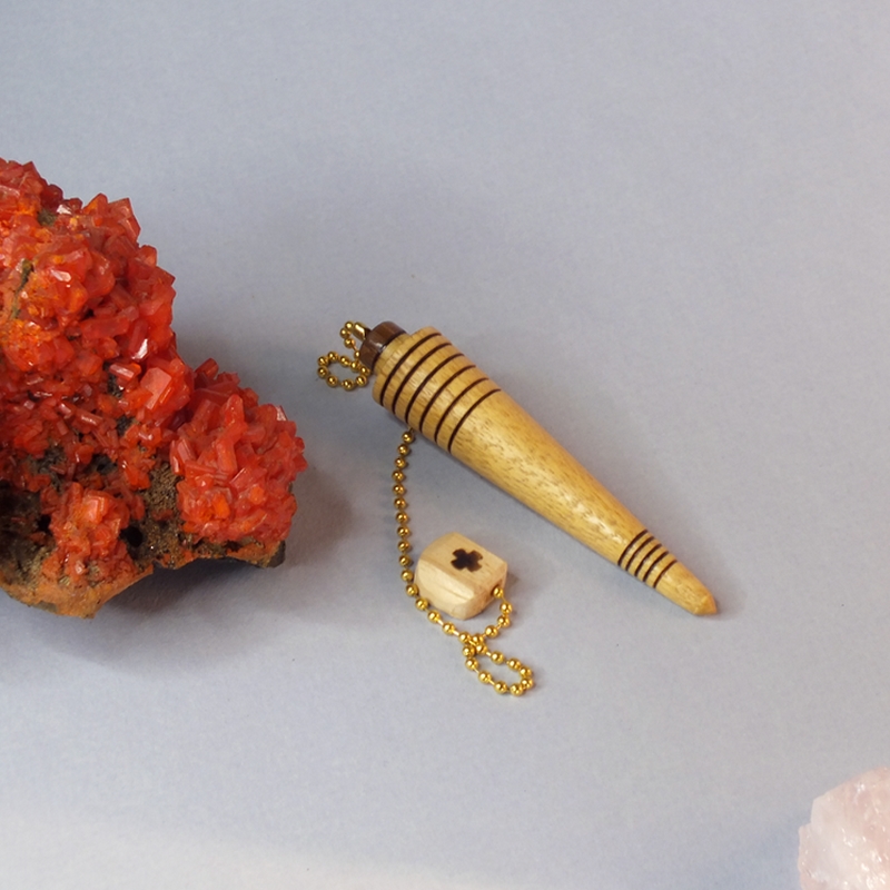 "Ultra VI*" ___ Pendule réalisé par mes soins en tournage sur bois dans mon atelier en Anjou. ___ Pendule pour médium et communication avec le monde spirituel. Il pourra être un outil précieux en amplifiant les perceptions et en affinant les messages reçus. ___ Fabriqué dans du bois de hêtre. Pendule lesté. ___ *Ultra VI, latin de 'Au-delà', sixième du nom. ___ C'est une pièce unique, ainsi vous recevrez le pendule que vous voyez en photo. ___ Des petites imperfections peuvent se voir sur la surface en fonction du type de bois (Nœuds, blessures ....), cela ne remet pas en cause la qualité du pendule. ___ Référence : 26-70tb-02 ___ Prix : 30 € port non compris.