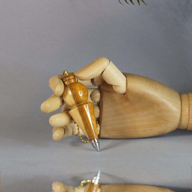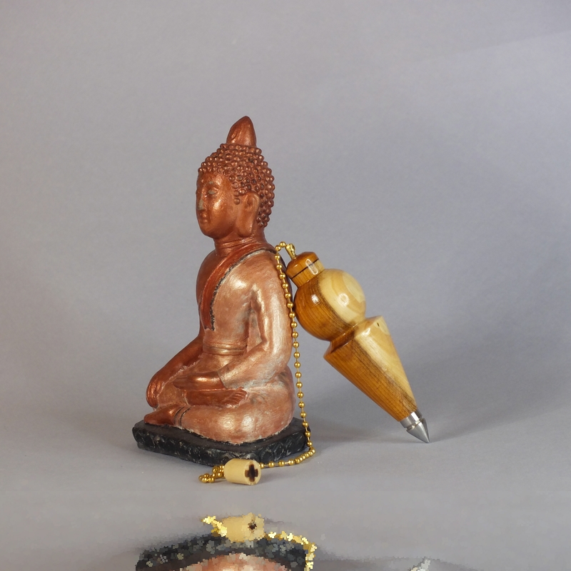 "Lascivia IV"* ___ Pendule réalisé à la main en tournage sur bois dans mon atelier, en bord de Loire, près d'Angers. ___ Pendule tourné dans du bois d'If, âme d'acier inox. Finition: Vernis acrylique. ___ Pendule étudié pour la radiesthésie physique (Moderne). Il est capable de capter la totalité des ondes naturelles, quelles soient magnétiques, électriques, radioactives ou autres**. Il est également possible de l'utiliser pour la radiesthésie classique. ___ Pour radiesthésistes débutants ou confirmés qui aiment les pendules de poids moyennement lourds (34g). ___ C'est une pièce unique, ainsi vous recevrez le pendule que vous voyez en photo. ___ Pour créer mes pendules de radiesthésie, j'utilise des bois de ma région à plus de 90%. ___ *Lascivia IV, quatrième du nom. **Utilisé avec la double antenne. (Voir le site internet Reviha.org, la radiesthésie étonnante) ___ Référence : 26-75bm-03 Dimensions : Haut : 8 cm Diamètre : 2,5 cm Poids : 34 grammes Chainette : 18 cm Prix : 38 € port non compris.