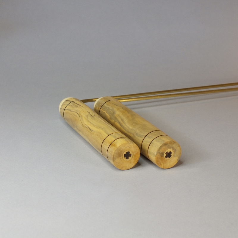 Baguettes coudées 32 cm pour la radiesthésie ___ Toutes les baguettes sont tournées et réglées dans mon atelier, dans le Maine et Loire, à la Possonnière 49170. ___ Pour le manche de ces baguettes, j'ai utilisé le buis échauffé. Ces baguettes sont en laiton de 3 mm. Son montage est simple et efficace. Pour le transport, ces baguettes sont maintenues par une poignée amovible imaginée par intuition-bois.. ___ Référence : 26-26ba-02 ___ Dimensions des baguettes : 32 cm ___ Hauteur des poignées : 11,5 cm ___ Diamètre des poignées : 2,2 cm Prix : 37€ port non compris.