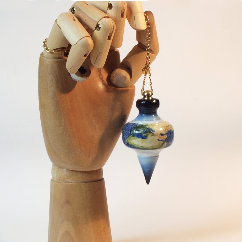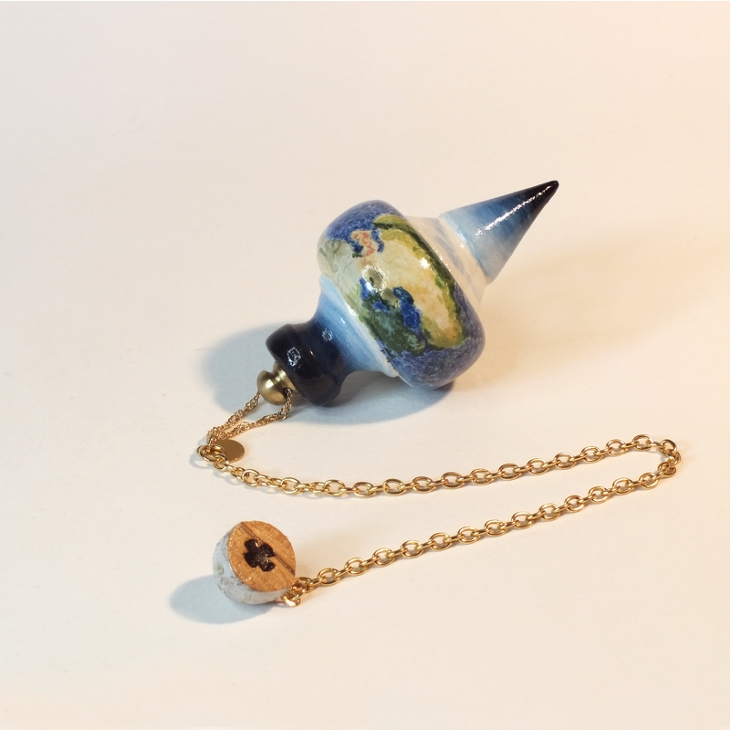 "Tellus" * ___ Pendule réalisé à la main en tournage sur bois dans mon atelier à La Possonnière 49170, en Anjou. ___ Modèle inspiré de la forme 'séphoroton'. Sa forme ronde et équilibrée favorise la précision et la stabilité dans les réponses obtenues. Vous apprécierez sa vivacité lors de son utilisation et ceci pour tout type de recherches. ___ Pour tourner ce pendule j'ai utilisé le bois d'eucalyptus, peint à la main, à l'acrylique et protégé par un vernis acrylique également. Support en bois de hêtre recouvert peinture et vernis acrylique. ___ C'est une pièce unique et l'unique pièce, ainsi vous recevrez le pendule que vous voyez en photo. ___ Tous mes pendules sont testés et classifiés en fonction de leurs caractéristiques : Ils sont tous adaptés pour la radiesthésie classique mais pas forcément pour la radiesthésie physique. En fonction des matériaux utilisés et de la forme des pendules, il seront plus ou moins performants pour capter les ondes électromagnétiques. ___ Pour le pendule "Tellus" : Radiesthésie classique : OK Radiesthésie physique : Magnétique + , - , +/- OK Electrique: Ce pendule ne capte pas les ondes électriques. ___ Pour créer mes pendules de radiesthésie, j'utilise des bois de ma région à plus de 90%. Des petites imperfections peuvent se voir sur la surface en fonction du type de bois (Nœuds, blessures ....), cela ne remet pas en cause la qualité du pendule. ___ * "Tellus", latin de Globe ___ Référence : 25-33tb-07