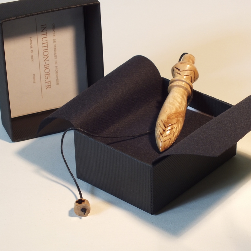 "Thot" ___ Pendule réalisé par mes soins en tournage sur bois dans mon atelier en Anjou. ___ Tourné en bois d'eucalyptus, lesté pour obtenir le poids idéal du pendule de Thot. Respecte le nombre d'or dans sa forme (1,618 cm) et la taille (7 cm de la pointe à la limite des chevrons supérieurs) Quatre chevrons à sa base et deux dans sa hauteur. ___ Le pendule de Thot, à la fois émetteur et récepteur. C’est sa forme pointue qui détermine en grande partie la nature de ses propriétés émettrices et réceptrices.(Ondes de formes) Le pendule de Thot est un émetteur puissant et cela en fait un outil de choix pour « charger » l’eau, un objet ou un lieu. De plus, c’est un pendule neutre qui ne nécessite pas d’être purifié avant chaque utilisation. ___ Symbolisme : L'eucalyptus : Dans le domaine ésotérique, l’eucalyptus est souvent utilisé pour ses propriétés purifiantes et protectrices. Il est courant de l’utiliser dans les rituels de nettoyage énergétique pour chasser les énergies négatives et apporter la clarté mentale. Les feuilles d’eucalyptus sont également utilisées dans les encens pour créer une atmosphère propice à la méditation et à la connexion spirituelle. ___ C'est une pièce unique, ainsi vous recevrez le pendule que vous voyez en photo. ___ Des petites imperfections peuvent se voir sur la surface en fonction du type de bois (Nœuds, blessures ....), cela ne remet pas en cause la qualité du pendule. ___ Référence : 25-36tb-09