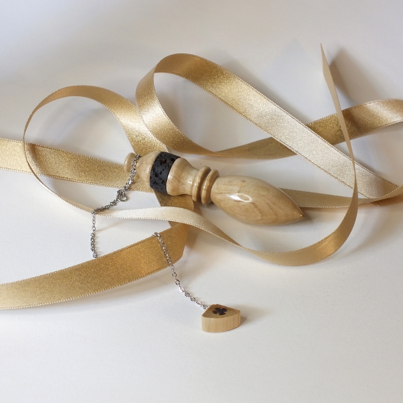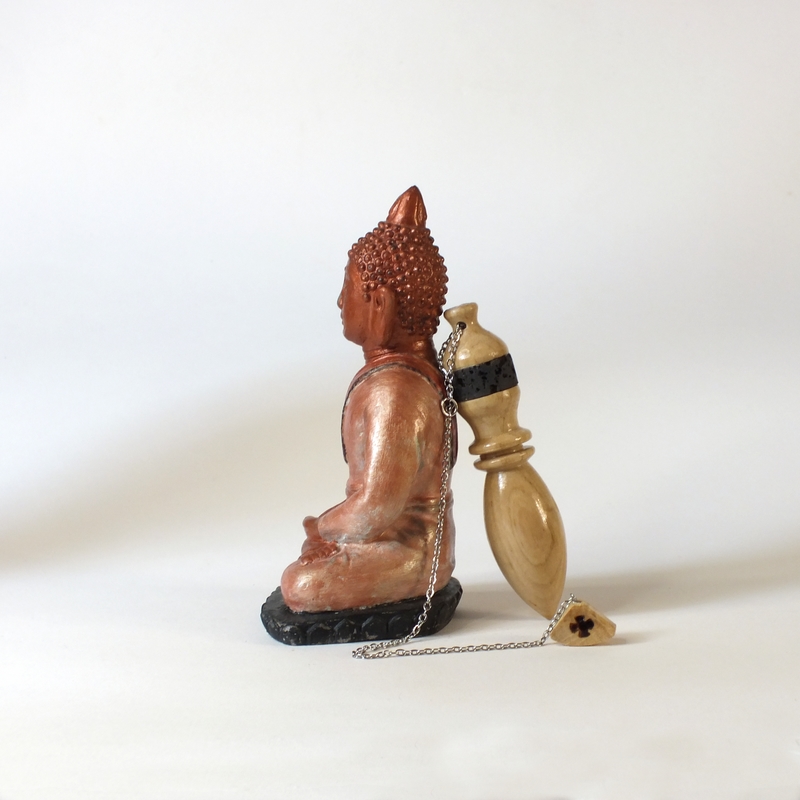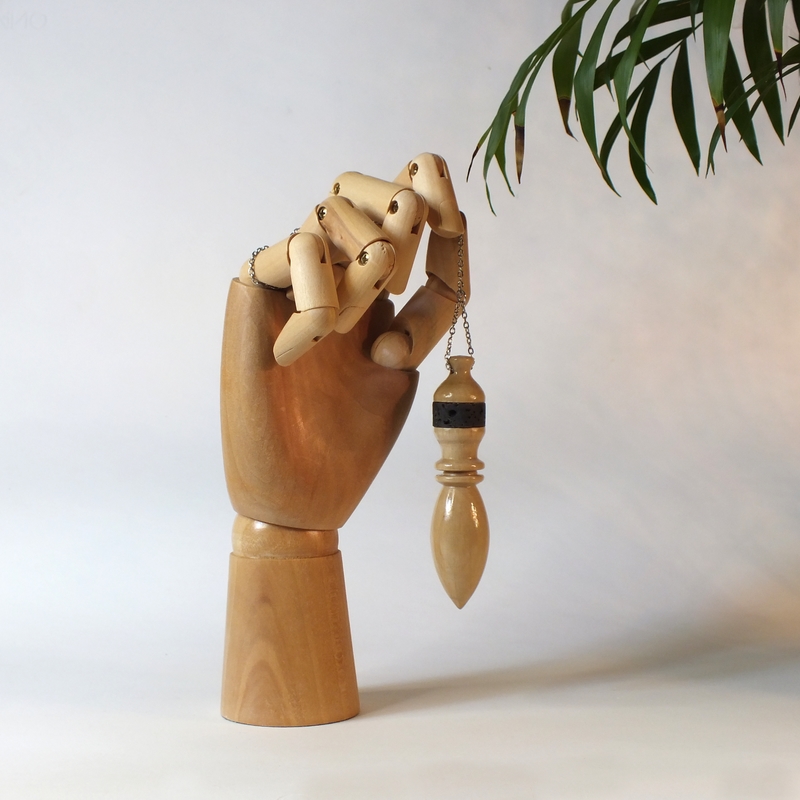 "Aegyptius" * ___ Pendule et support réalisés par mes soins en tournage sur bois et pierre, dans mon atelier en Anjou. ___ Grand pendule en bois de Frêne et pierre de lave. Avec support en bois de figuier. C'est un pendule de type "égyptien" surmonté d'une pierre de lave de Volvic. ___ La forme du pendule détermine en grande partie la nature de ses propriétés émettrices et réceptrices. Ils sont particulièrement utilisés en télé-radiesthésie (radiesthésie à distance). ___ Symbolisme : À l'instar du Chêne, le Frêne est un symbole de solidité puissante. Dans les traditions scandinaves, cet arbre symbolise l'immortalité et sert de lien entre les trois niveaux du cosmos. ___ La forme des pendules égyptiens est basée sur une amulette égyptienne connue sous le nom d’amulette « Ouadj ». Les anciens les utilisaient pour guider et protéger les défunts dans l’au-delà. Souvent utilisé pour la radiesthésie divinatoire, la radionique... ___ Les vertus de la pierre de lave: En lithothérapie, c’est un minéral stimulant dont l’énergie puissante entre en vibration avec les chakras. En particulier, les chakras racine, sacré et plexus solaire sont reliés par le fluide de cette pierre si puissante. Les énergies du feu et de la terre mère contenues dans cette lave figée en font un vecteur d’enracinement. ___ Pour créer ces pendules "bois-pierre", je n'utilise que des pierres que l'on appelle "ordinaires" , les cailloux de nos chemins, de nos rivières... Après façonnages et polissages, elles les subliment... ___ Des petites imperfections peuvent se voir sur la surface en fonction du type de bois (Nœuds, blessures ....), cela ne remet pas en cause la qualité du pendule. ___ * "Aegyptius" latin d'égyptien. ___ Référence : 25-25bp-09