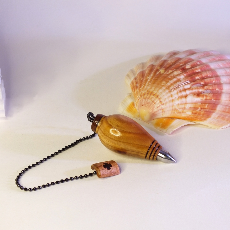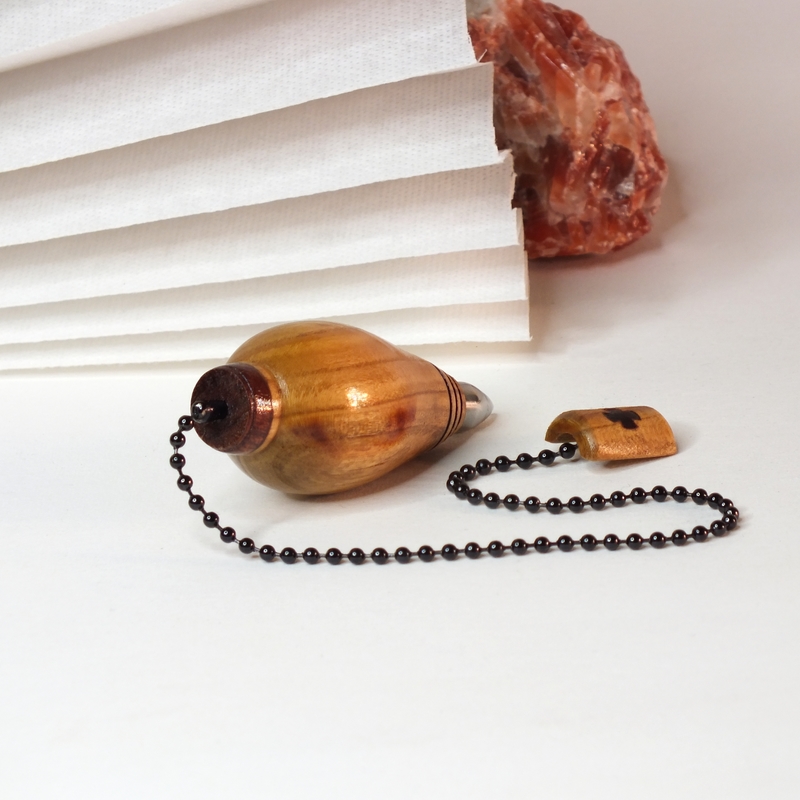 "Comice II" * ___ Pendule réalisé à la main en tournage sur bois dans mon atelier à La Possonnière 49170, en Anjou. ___ Pendule en bois de Pêcher. Symbolisme: Dans la géomancie chinoise (Feng Shui), le pêcher est considéré comme un puissant générateur d’énergie Yang, capable de dissiper les influences négatives et d’attirer prospérité et longévité. En Chine ancienne, des baguettes divinatoires en bois de pêcher servaient à communiquer avec les esprits et à prédire l’avenir. La numérologie ésotérique associe souvent le pêcher au chiffre 3, symbolisant la trinité créatrice et l’harmonie parfaite. ___ Pendule pour la radiesthésie classique mais aussi la radiesthésie physique. Il est capable de capter la totalité des ondes naturelles, quelles soient magnétiques, électriques, radioactives ou autres**. Emetteur et récepteur. ___ Sa pointe effilée facilitera la recherche sur plan ou photo. ___ Pour radiesthésistes débutants ou confirmés qui aiment les pendules de poids moyennement lourds (25g). ___ C'est une pièce unique, ainsi vous recevrez le pendule que vous voyez en photo. __ Pour créer mes pendules de radiesthésie, j'utilise des bois de ma région à plus de 90% et bois exotiques de réemploi. ___ *Comice II, de par sa forme effilée en forme de poire "comice" / Deuxième du nom. **Utilisé avec la double antenne non fournie. (Voir le site internet Reviha, la radiesthésie étonnante) ___ Référence : 25-40bm-09