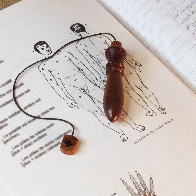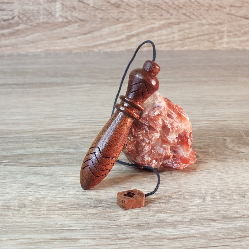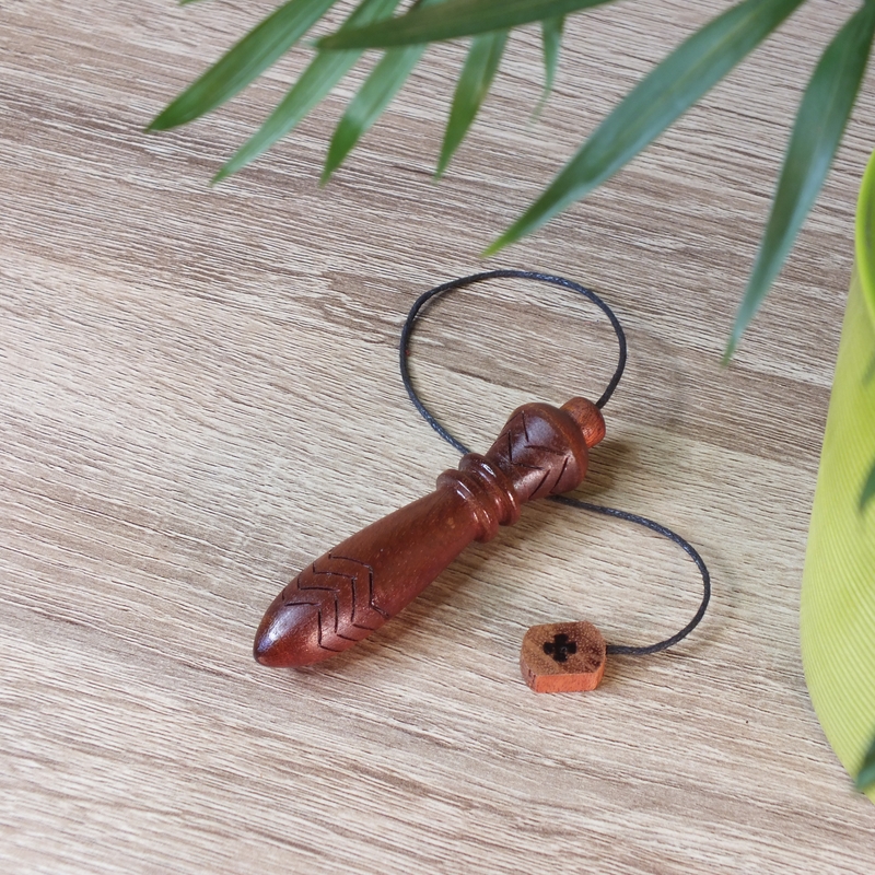 "Thot" ___ Pendule réalisé par mes soins en tournage sur bois dans mon atelier en Anjou. ___ Tourné en bois d'acajou (réemploi), lesté pour obtenir le poids idéal du pendule de Thot. Respecte le nombre d'or dans sa forme (1,618 cm) et la taille (7 cm de la pointe à la limite des chevrons supérieurs) Quatre chevrons à sa base et deux dans sa hauteur. ___ Le pendule de Thot, à la fois émetteur et récepteur. C’est sa forme pointue qui détermine en grande partie la nature de ses propriétés émettrices et réceptrices.(Ondes de formes) Le pendule de Thot est un émetteur puissant et cela en fait un outil de choix pour « charger » l’eau, un objet ou un lieu. De plus, c’est un pendule neutre qui ne nécessite pas d’être purifié avant chaque utilisation. ___ C'est une pièce unique, ainsi vous recevrez le pendule que vous voyez en photo. ___ Des petites imperfections peuvent se voir sur la surface en fonction du type de bois (Nœuds, blessures ....), cela ne remet pas en cause la qualité du pendule. ___ Référence : 25-40tb-10