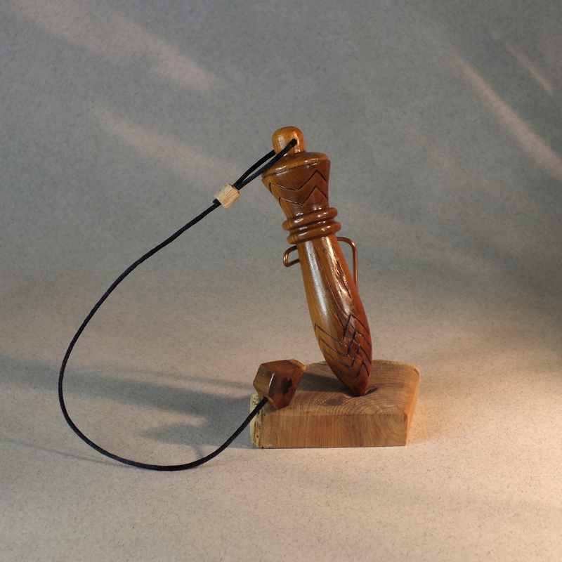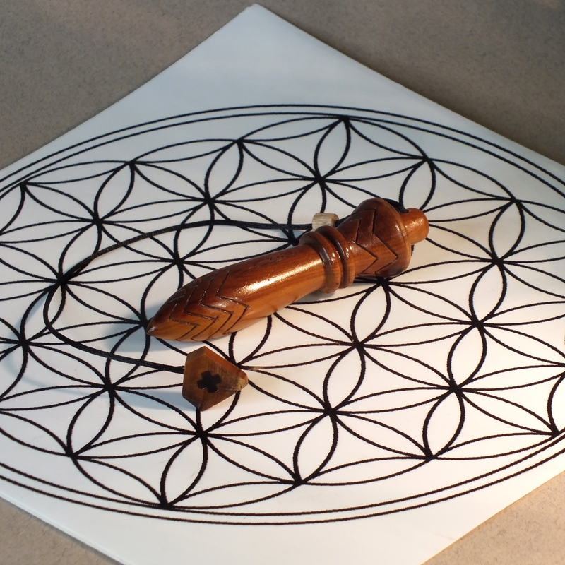"Thot" ___ Pendule réalisé par mes soins en tournage sur bois dans mon atelier en Anjou. ___ Tourné en bois d'If, lesté pour obtenir le poids idéal du pendule de Thot (22g). Respecte le nombre d'or dans sa forme (1,618 cm) et la taille (7 cm de la pointe à la limite des chevrons supérieurs) Quatre chevrons à sa base et deux dans sa hauteur. ___ Le pendule de Thot, à la fois émetteur et récepteur. Ce sont ces formes et les dessins (chevrons) qui déterminent en grande partie la nature de ses propriétés émettrices et réceptrices.(Ondes de formes) Le pendule de Thot est un émetteur puissant et cela en fait un outil de choix pour « charger » l’eau, un objet ou un lieu. De plus, c’est un pendule neutre qui ne nécessite pas d’être purifié avant chaque utilisation. ___ Symbolisme de l'If: Dans le domaine ésotérique, l’if commun est souvent utilisé dans les rituels de transformation et de renaissance. Ses feuilles persistantes et son bois dense en font un symbole de longévité et de résistance. L’if est souvent associé à la magie et à la divination, utilisée pour se connecter aux esprits et aux ancêtres. ___ C'est une pièce unique, ainsi vous recevrez le pendule que vous voyez en photo. ___ Des petites imperfections peuvent se voir sur la surface en fonction du type de bois (Nœuds, blessures ....), cela ne remet pas en cause la qualité du pendule. ___ Référence : 25-55tb-12
