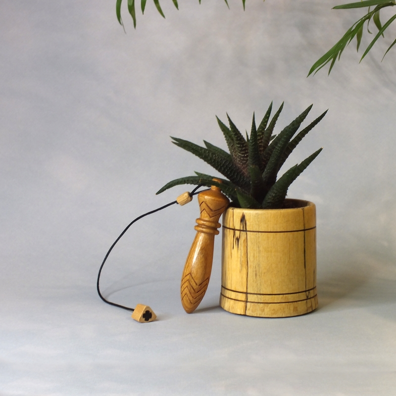 "Thot" ___ Pendule réalisé par mes soins en tournage sur bois dans mon atelier en Anjou. ___ Tourné en bois de merisier, lesté pour obtenir le poids idéal du pendule de Thot (22g). Respecte le nombre d'or dans sa forme (1,618 cm) et la taille (7 cm de la pointe à la limite des chevrons supérieurs) Quatre chevrons à sa base et deux dans sa hauteur. ___ Le pendule de Thot, à la fois émetteur et récepteur. Ce sont ces formes et les dessins (chevrons) qui déterminent en grande partie la nature de ses propriétés émettrices et réceptrices.(Ondes de formes) Le pendule de Thot est un émetteur puissant et cela en fait un outil de choix pour « charger » l’eau, un objet ou un lieu. De plus, c’est un pendule neutre qui ne nécessite pas d’être purifié avant chaque utilisation. ___ Symbolisme du merisier: Le merisier, arbre majestueux et discret, est bien plus qu’un simple élément de la nature. Il incarne une force tranquille, une présence rassurante qui traverse les âges. Dans le domaine de l’ésotérisme, le merisier est souvent utilisé pour ses propriétés magiques et spirituelles. Il est considéré comme un arbre de protection et de purification, capable de repousser les énergies négatives et d’attirer les influences positives. Le merisier est souvent utilisé dans les rituels de divination, ses feuilles et son écorce étant brûlées pour invoquer les esprits et obtenir des réponses aux questions existentielles.(source: www.symboliques.fr) ___ C'est une pièce unique, ainsi vous recevrez le pendule que vous voyez en photo. ___ Des petites imperfections peuvent se voir sur la surface en fonction du type de bois (Nœuds, blessures ....), cela ne remet pas en cause la qualité du pendule. ___ Référence : 25-53tb-12