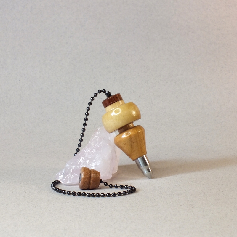 "Bi-ligno" * ___ Pendule réalisé à la main en tournage sur bois dans mon atelier à La Possonnière 49170, en Anjou. ___ Pendule en bois d'eucalyptus et pêcher. Ame métal. Pendule pour la radiesthésie classique, tout type de recherche. ___ Sa pointe effilée facilitera la recherche sur plan ou photo. ___ Pour radiesthésistes débutants ou confirmés qui aiment les pendules de poids moyennement lourds (24g). ___ C'est une pièce unique, ainsi vous recevrez le pendule que vous voyez en photo. ___ Pour créer mes pendules de radiesthésie, j'utilise des bois de ma région à plus de 90% et bois exotiques de réemploi. __ *Bi-ligno, Latin de 'bi-bois' ___ Référence : 25-59bm-12