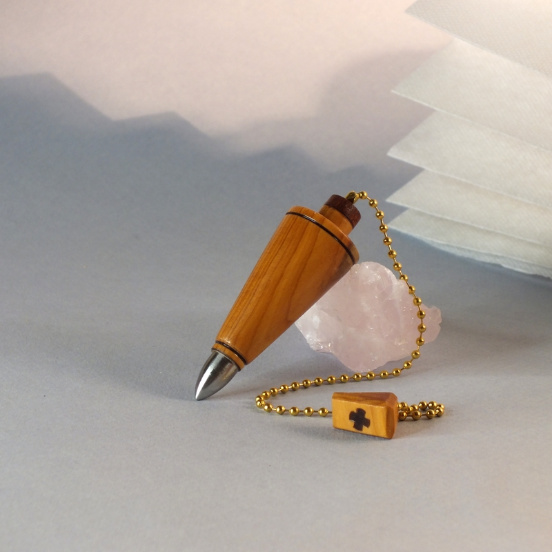 "Clarus"* ___ Pendule réalisé à la main en tournage sur bois dans mon atelier, en bord de Loire, près d'Angers. ___ Pendule tourné dans du bois d'If, âme d'acier inox. Finition: Cire de Carnauba. ___ Pendule étudié pour la radiesthésie physique (Moderne). Il est capable de capter la totalité des ondes naturelles, quelles soient magnétiques, électriques, radioactives ou autres**. ___ Il est également possible de l'utiliser pour la radiesthésie classique. ___ Pour radiesthésistes débutants ou confirmés qui aiment les pendules de poids moyennement lourds (24g). ___ C'est une pièce unique, ainsi vous recevrez le pendule que vous voyez en photo. ___ Pour créer mes pendules de radiesthésie, j'utilise des bois de ma région à plus de 90%. ___ *Clarus, latin de 'clair'. ___ **Utilisé avec la double antenne. (Voir le site internet Reviha.org, la radiesthésie étonnante) ___Référence : 26-63bm-01