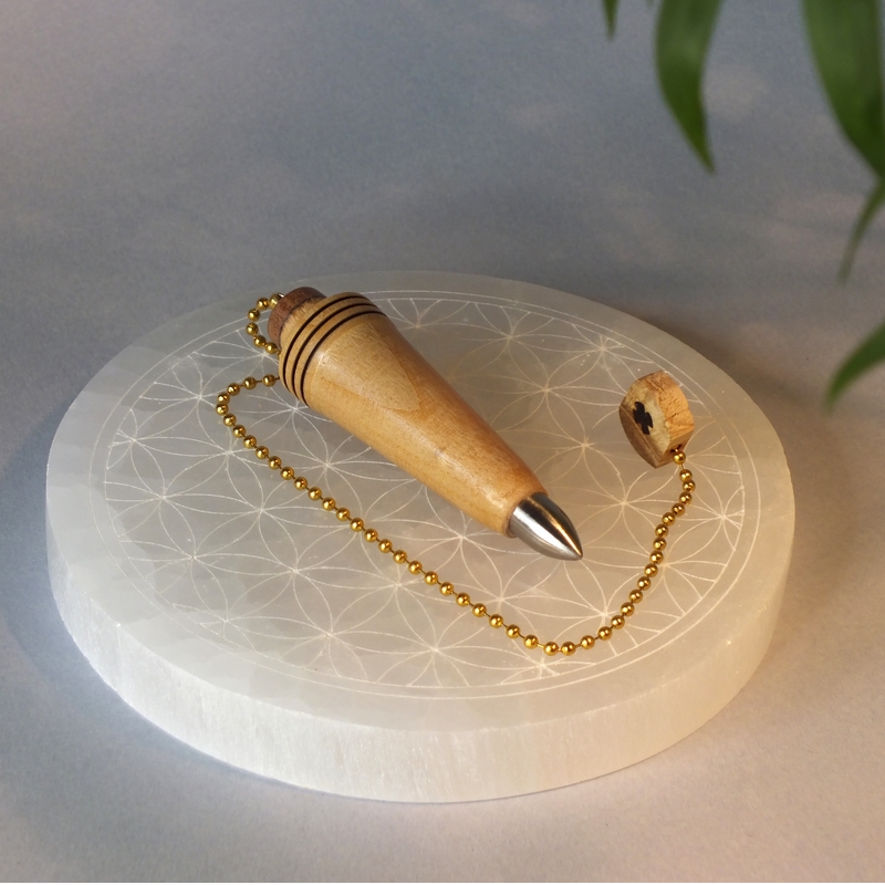"Modo II"* ___ Pendule réalisé à la main en tournage sur bois dans mon atelier, en bord de Loire, près d'Angers. ___ Pendule tourné dans du bois de hêtre, âme d'acier inox. Finition: Cire de Carnauba. (L'antenne en photo n'est pas comprise dans le prix). ___ Pendule étudié pour la radiesthésie physique (Moderne). Il est capable de capter la totalité des ondes naturelles, quelles soient magnétiques, électriques, radioactives ou autres**. Il est également possible de l'utiliser pour la radiesthésie classique. ___ Pour radiesthésistes débutants ou confirmés qui aiment les pendules de poids moyennement lourds (22g). ___ C'est une pièce unique, ainsi vous recevrez le pendule que vous voyez en photo. ___ Pour créer mes pendules de radiesthésie, j'utilise des bois de ma région à plus de 90%. ___ *Modo II, latin de 'juste'. Deuxième du nom. ___ **Utilisé avec la double antenne. (Voir le site internet Reviha.org, la radiesthésie étonnante) ___ Référence : 26-67bm-01 __ Dimensions : __ Haut : 7 cm __ Diamètre : 2 cm __ Poids: 22 grammes __ Chainette : 18 cm ___ Prix : 38 € port non compris.