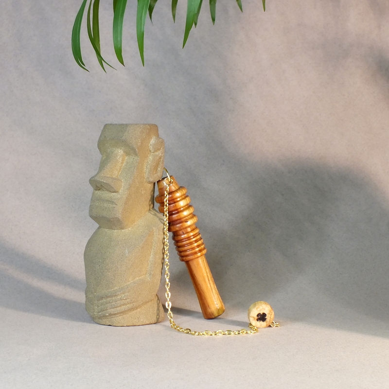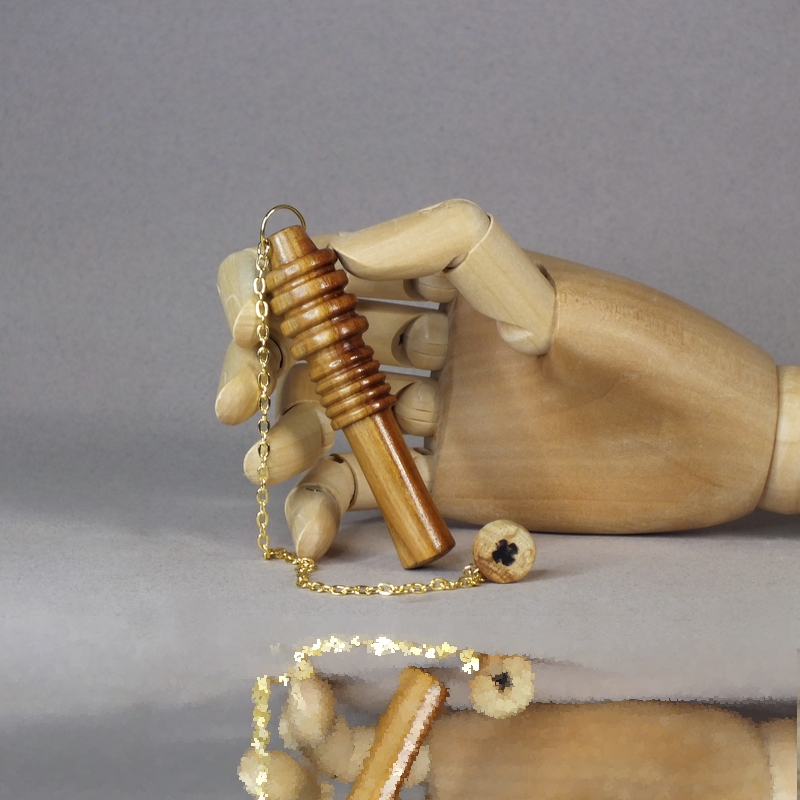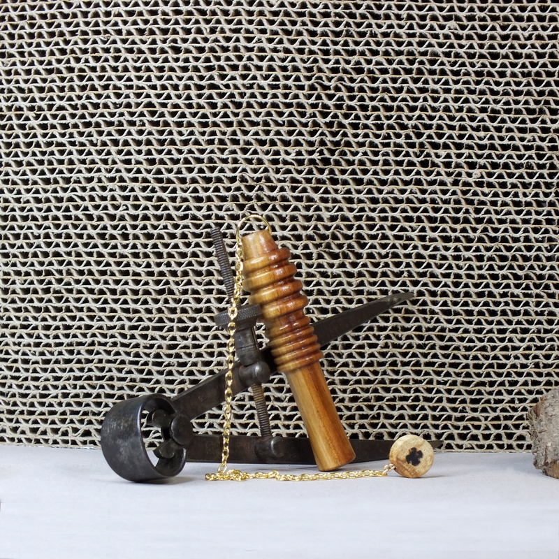 "Djed pêcher" __ Pendule réalisé à la main en tournage sur bois dans mon atelier à La Possonnière 49170, en Anjou. ___ Pendule en bois de pêcher lesté, pour la radiesthésie classique. ___ Le pendule Djed est un outil de radiesthésie aux origines égyptiennes, utilisé pour la méditation et les pratiques spirituelles, offrant précision et polyvalence grâce à sa capacité à émettre et recevoir des énergies. ___ Outil de radiesthésie (pendule) dont le corps reprend la forme du Djed, symbole égyptien de stabilité et de la résilience. ___ Méditation et ancrage __ Le symbole Djed, associé à la colonne vertébrale et à la stabilité, est utilisé comme point focal pour renforcer la concentration. ___ Référence : 26-68tb-02 Prix : 38 € port non compris.