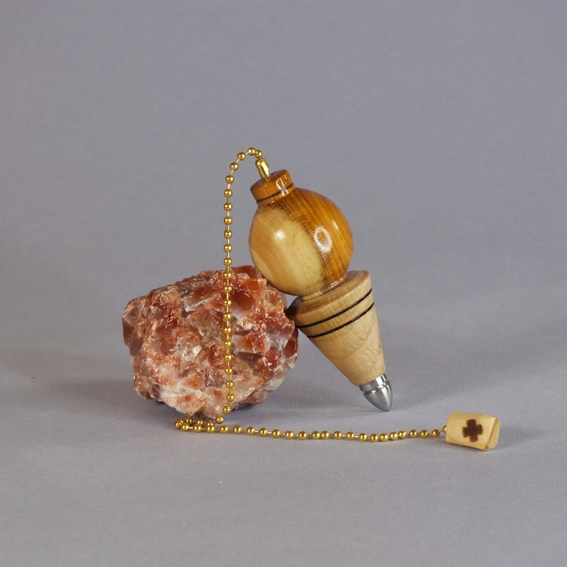 "Lascivia V"* ___ Pendule réalisé à la main en tournage sur bois dans mon atelier, en bord de Loire, près d'Angers. ___ Pendule tourné dans du bois d'If et châtaignier, âme d'acier inox. Finition: Vernis acrylique. ___ Pendule étudié pour la radiesthésie physique (Moderne). Il est capable de capter la totalité des ondes naturelles, quelles soient magnétiques, électriques, radioactives ou autres**. Il est également possible de l'utiliser pour la radiesthésie classique. ___ Pour radiesthésistes débutants ou confirmés qui aiment les pendules de poids moyennement lourds (32g). ___ C'est une pièce unique, ainsi vous recevrez le pendule que vous voyez en photo. ___ Pour créer mes pendules de radiesthésie, j'utilise des bois de ma région à plus de 90%. ___ *Lascivia V, cinquième du nom. **Utilisé avec la double antenne. (Voir le site internet Reviha.org, la radiesthésie étonnante) ___Référence : 26-76bm-03 Dimensions : Haut : 7 cm Diamètre : 2,5 cm Poids : 32 grammes Chainette : 18 cm Prix : 38 € port non compris.