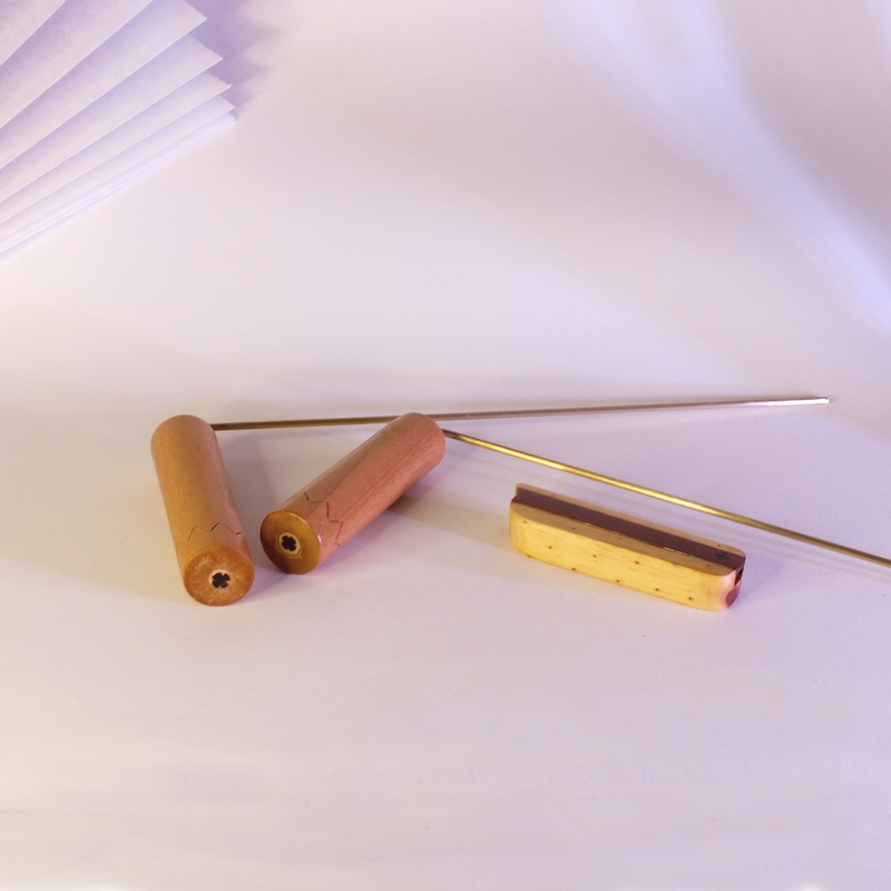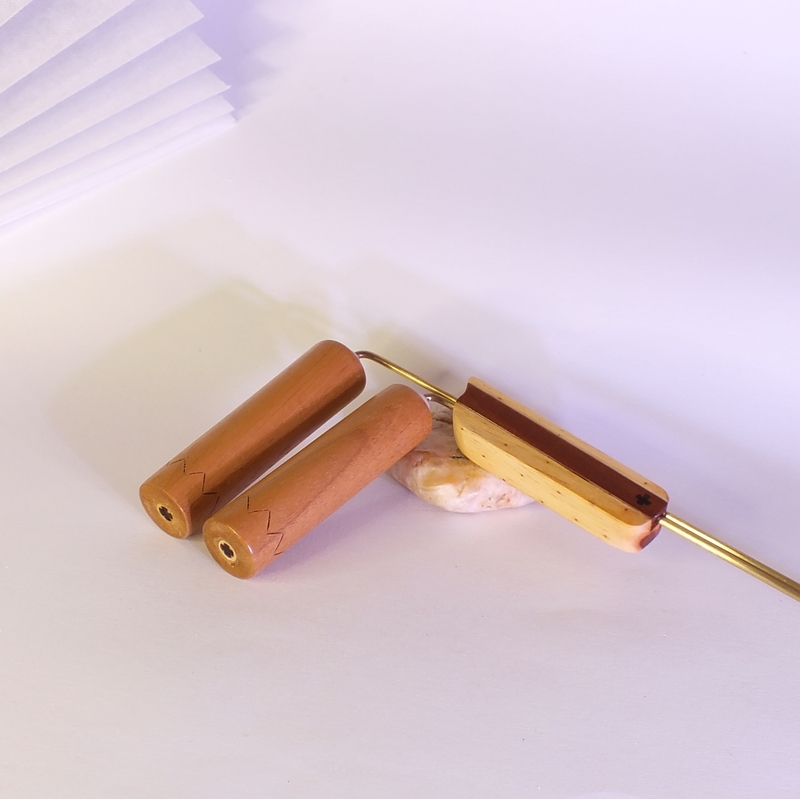 Baguettes coudées "Radmaster" pour enfants ou petites mains... ___ Paire de baguettes de radiesthésie en laiton de 3 mm, manches en bois de hêtre. ___ Fabrication artisanale au tour à bois, montage manuel à mon atelier, fait par mes soins. ___ Baguettes simple mais efficaces, ces baguettes sont maintenues par une poignée amovible imaginée par intuition-bois.. ___ Ref : 25-13ba-09 ___ longueur : 28 cm (pour petites mains et/ou enfant) ___ Diamètre des manches : 2,3 cm. ___ hauteur des manches : 10 cm ___ Les baguettes que vous recevez sont celles photographiées. Toutes mes créations sont des modèles uniques. ___ 35€ plus port.
