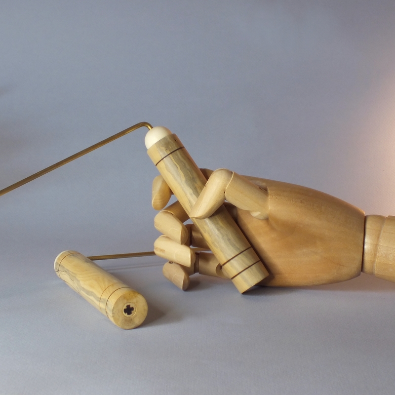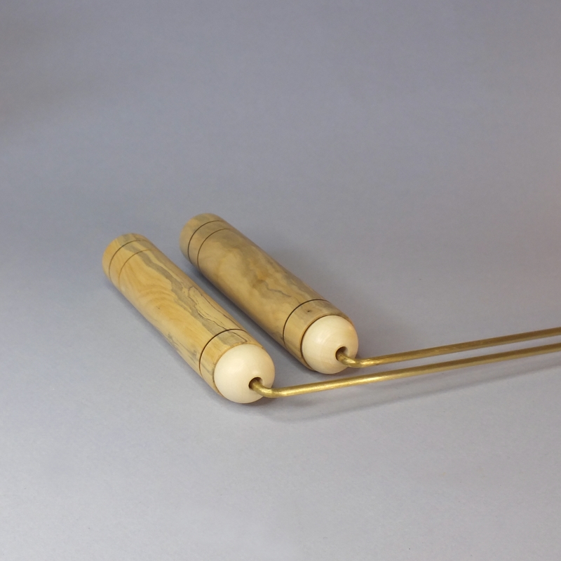 Baguettes coudées 32 cm pour la radiesthésie ___ Toutes les baguettes sont tournées et réglées dans mon atelier, dans le Maine et Loire, à la Possonnière 49170. ___ Pour le manche de ces baguettes, j'ai utilisé le buis échauffé. Ces baguettes sont en laiton de 3 mm. Son montage est simple et efficace. Pour le transport, ces baguettes sont maintenues par une poignée amovible imaginée par intuition-bois.. ___ Référence : 26-26ba-02 ___ Dimensions des baguettes : 32 cm ___ Hauteur des poignées : 11,5 cm ___ Diamètre des poignées : 2,2 cm Prix : 37€ port non compris.