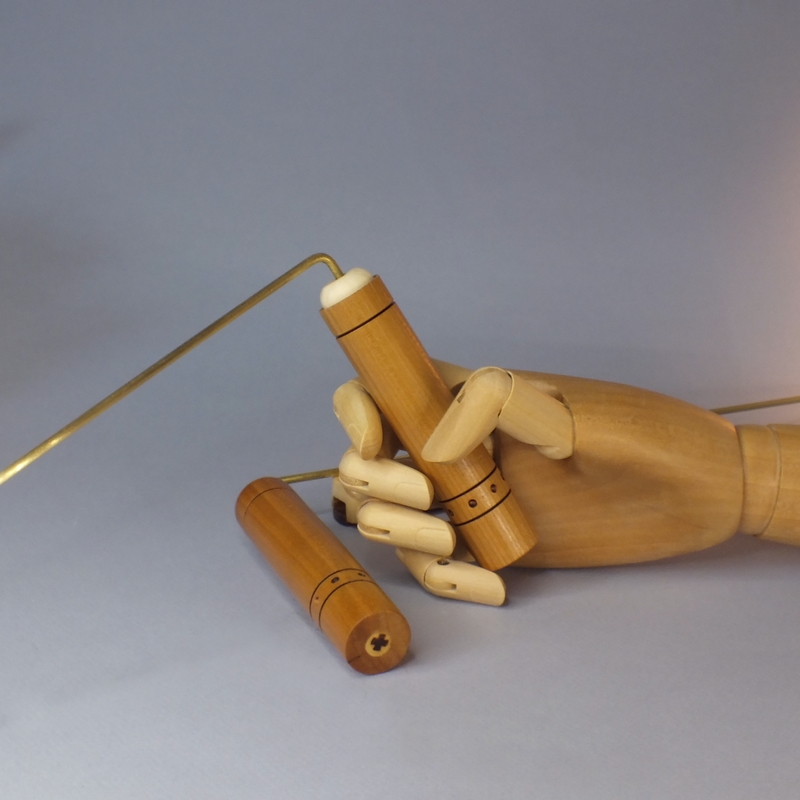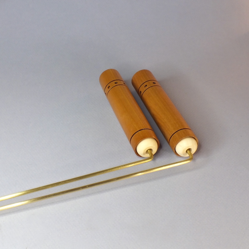 Baguettes coudées 32 cm pour la radiesthésie ___ Toutes les baguettes sont tournées et réglées dans mon atelier, dans le Maine et Loire, à la Possonnière 49170. ___ Pour le manche de ces baguettes, j'ai utilisé le merisier. Ces baguettes sont en laiton de 3 mm. Son montage est simple et efficace. Pour le transport, ces baguettes sont maintenues par une poignée amovible imaginée par intuition-bois.. ___ Référence : 26-27ba-02 ___ Dimensions des baguettes : 32 cm ___ Hauteur des poignées : 11 cm ___ Hiamètre des poignées : 2,2 cm ___ Prix : 37€ port non compris.